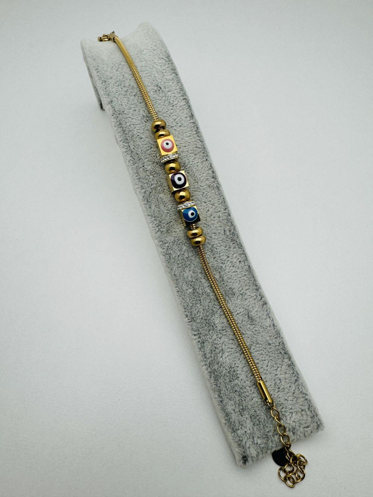 Nazar Boncuklu Pandora Çelik Bileklik (Gold) Blk 21175