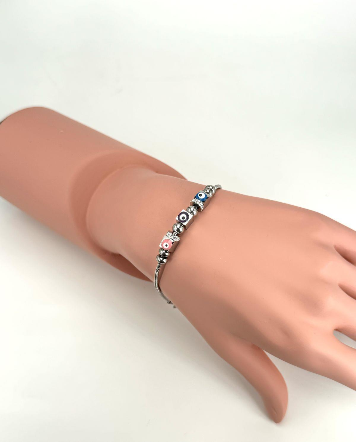Nazar Boncuklu Pandora Çelik Bileklik (Gümüş) Blk 21175-01