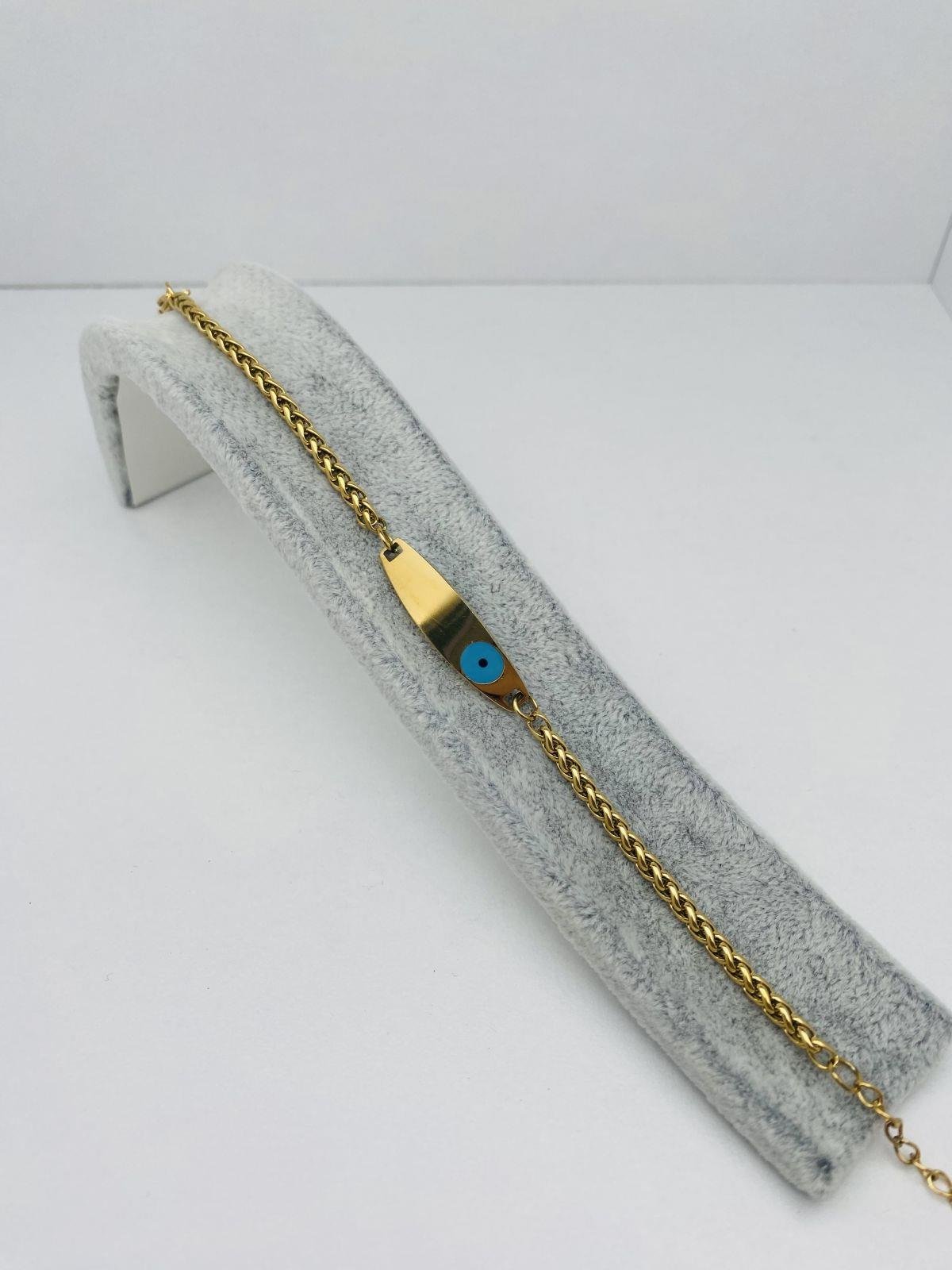 Nazar Boncuklu Plaka Çelik Bileklik (Gold) Blk 2115-01