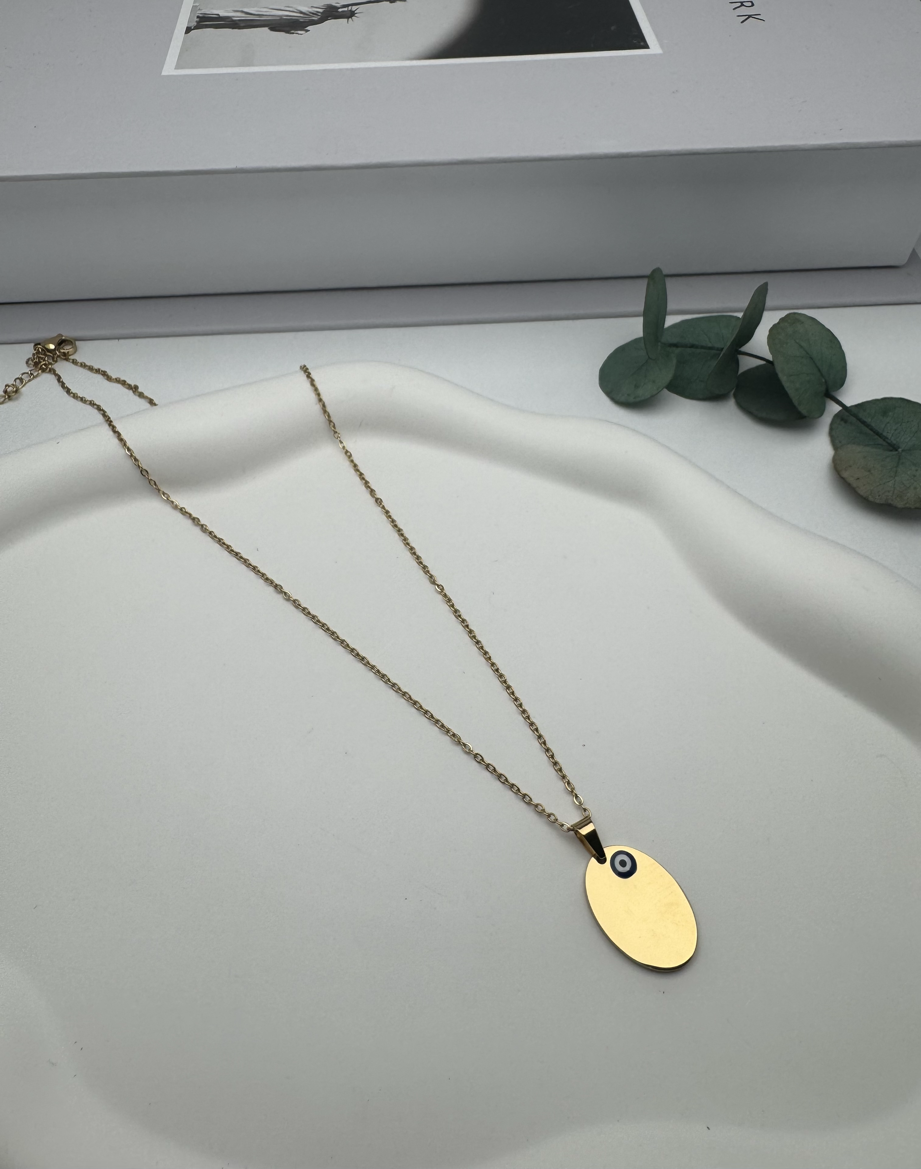 Nazar Boncuklu Plaka Çelik Kolye (Gold) 0106104