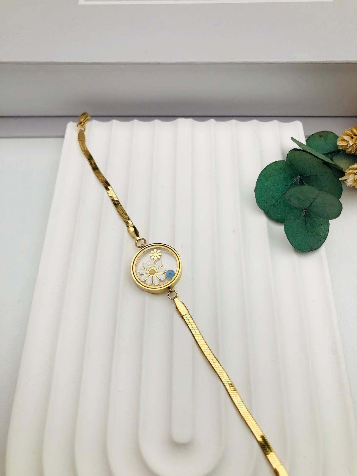 Papatya Detaylı Fanus (açılmayan) Çelik Bileklik (Gold) 211106