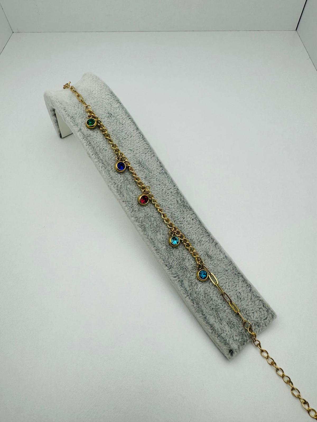 Renkli Taşlı Çelik Bileklik (Gold) Blk 211146