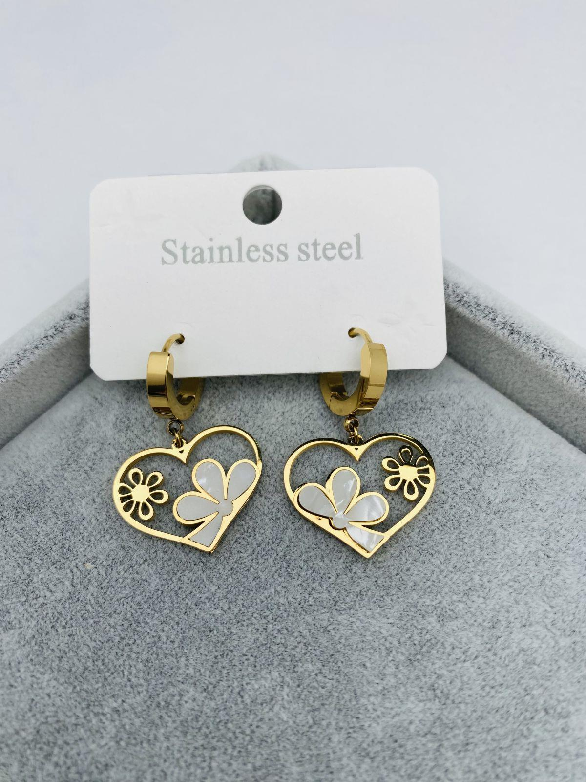Sedefli Kalp Çelik Küpe (gold) KP199