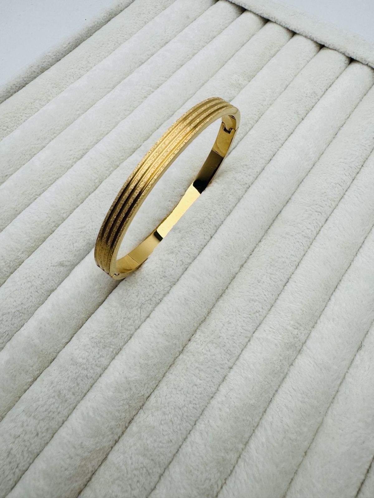 Simli  Taşlı Çelik Kelepçe (Gold) 2039