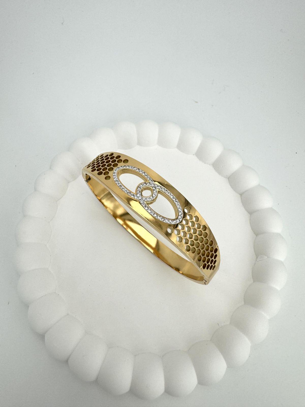 Sonsuzluk Detaylı Taşlı Çelik Kelepçe (Gold) 2095