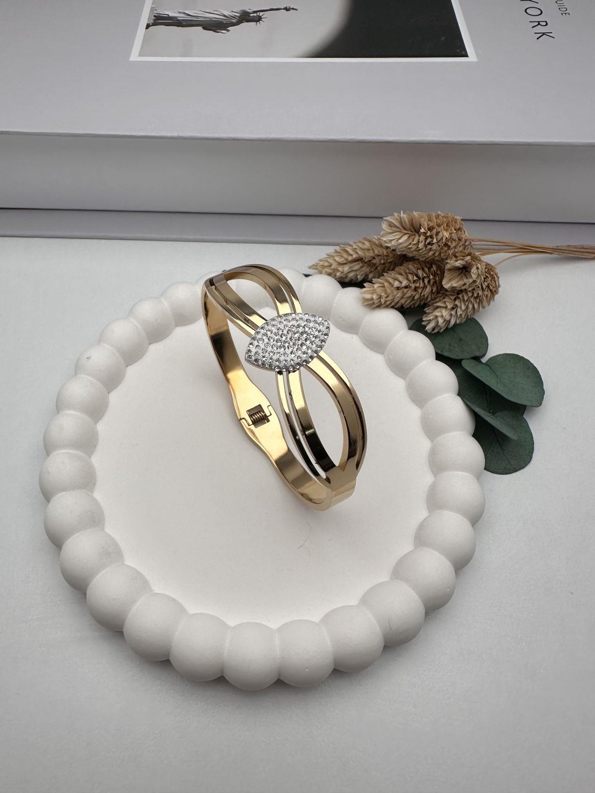 Taş Detaylı Çelik Kelepçe (Gold) 2146