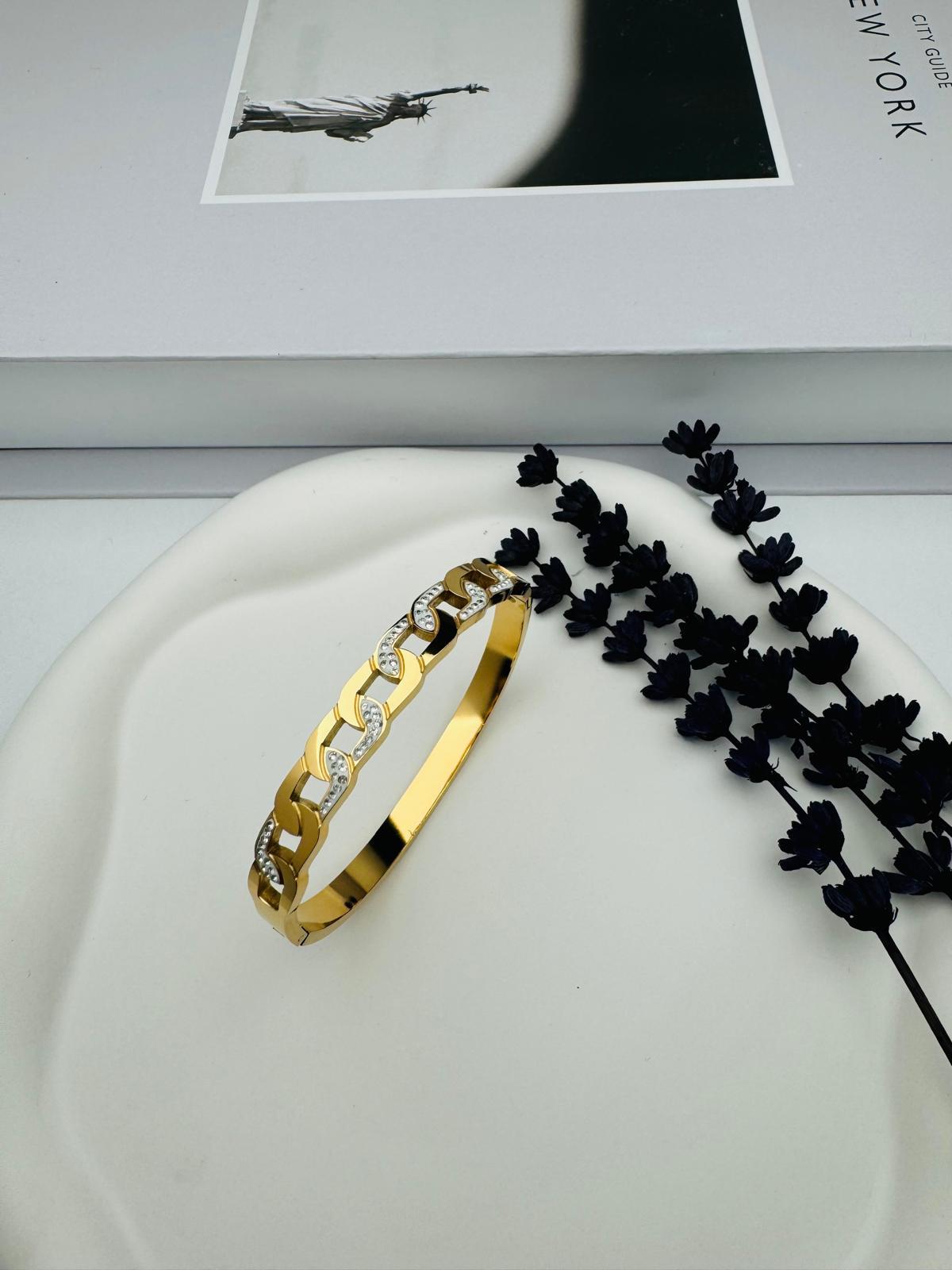 Taş Detaylı Çelik Kelepçe (Gold) 22016