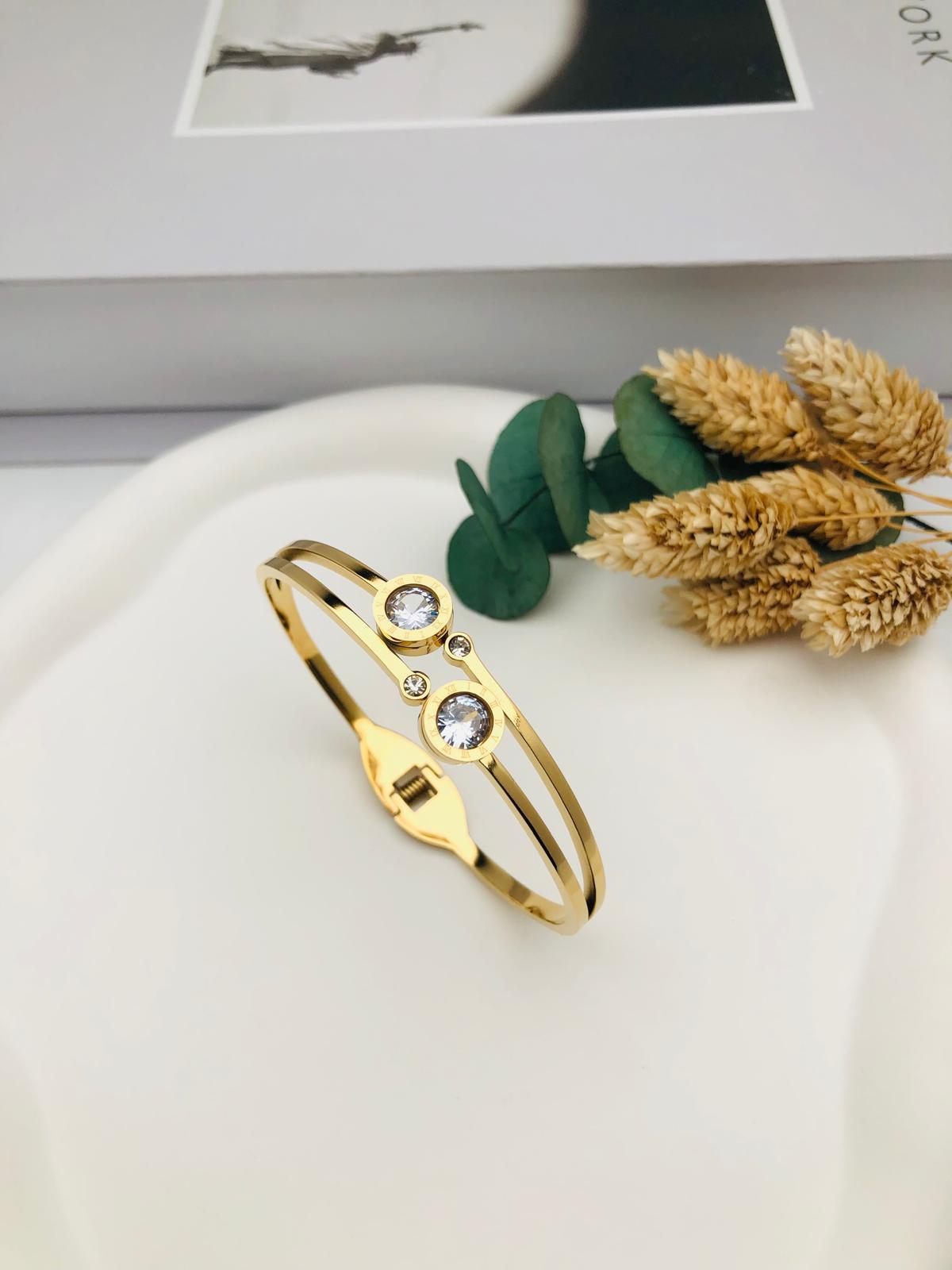 Taş Detaylı Çelik Kelepçe (Gold)2176