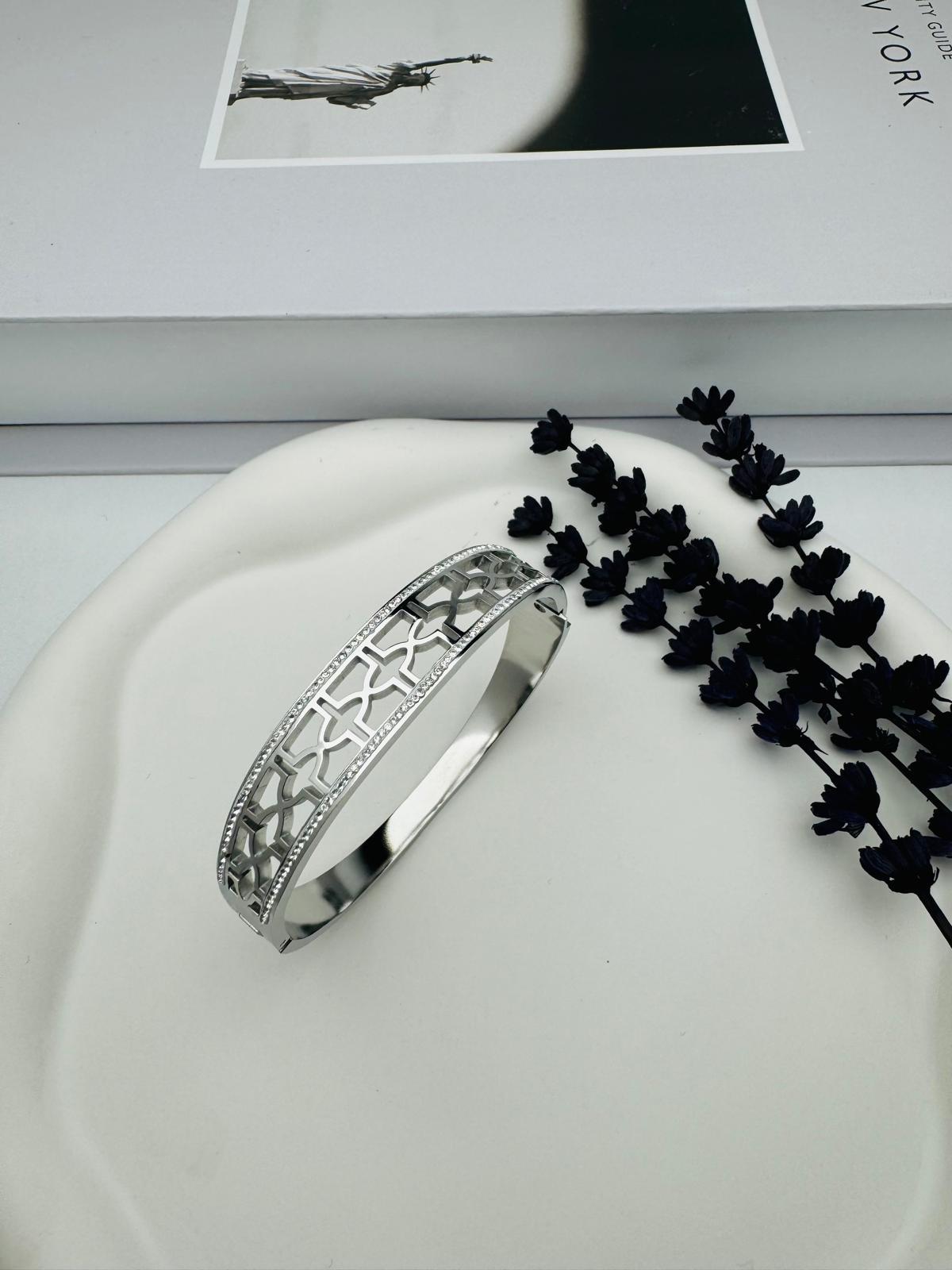 Taş Detaylı Çelik Kelepçe (Gümüş 22010