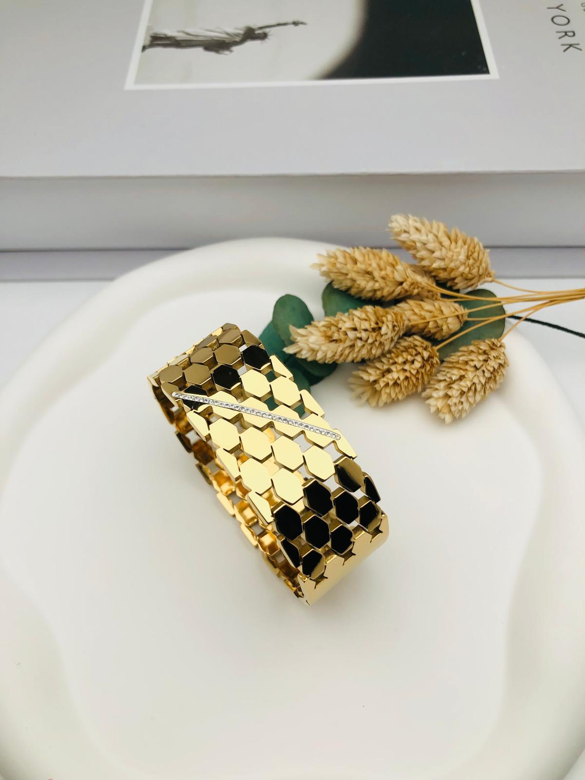 Taş DetaylıÇelik Kelepçe (Gold)2159
