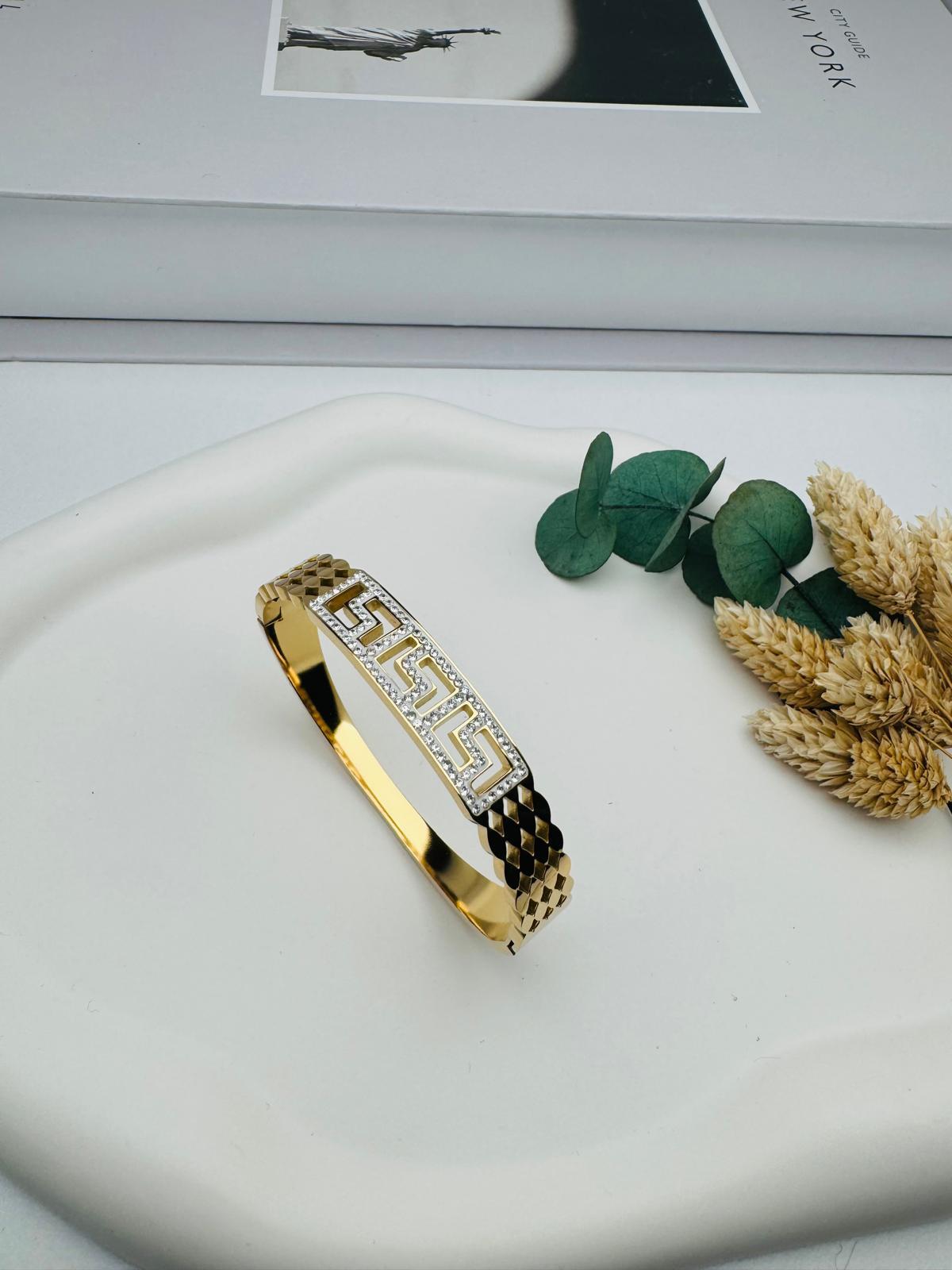 Taşlı Detaylı Çelik Kelepçe (Gold) 22070