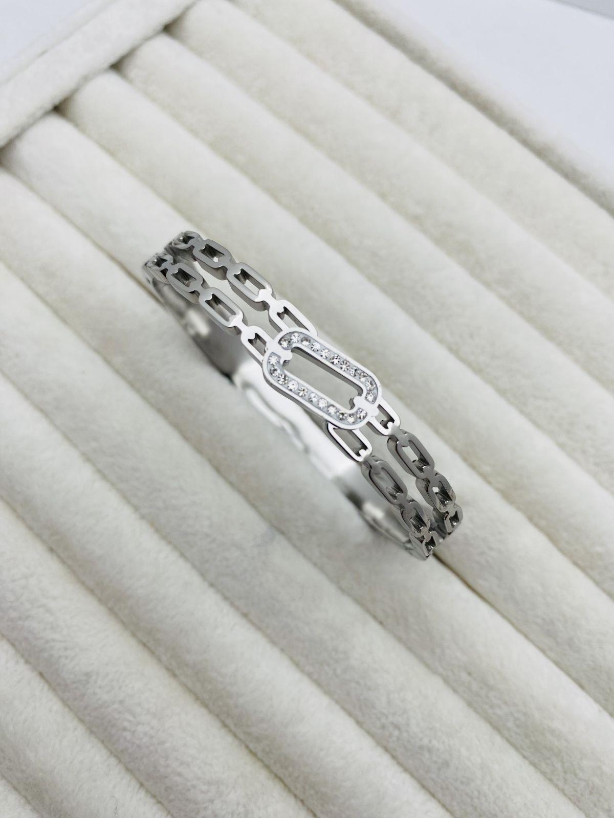 Taşlı Detaylı Çelik Kelepçe (Gümüş)1825