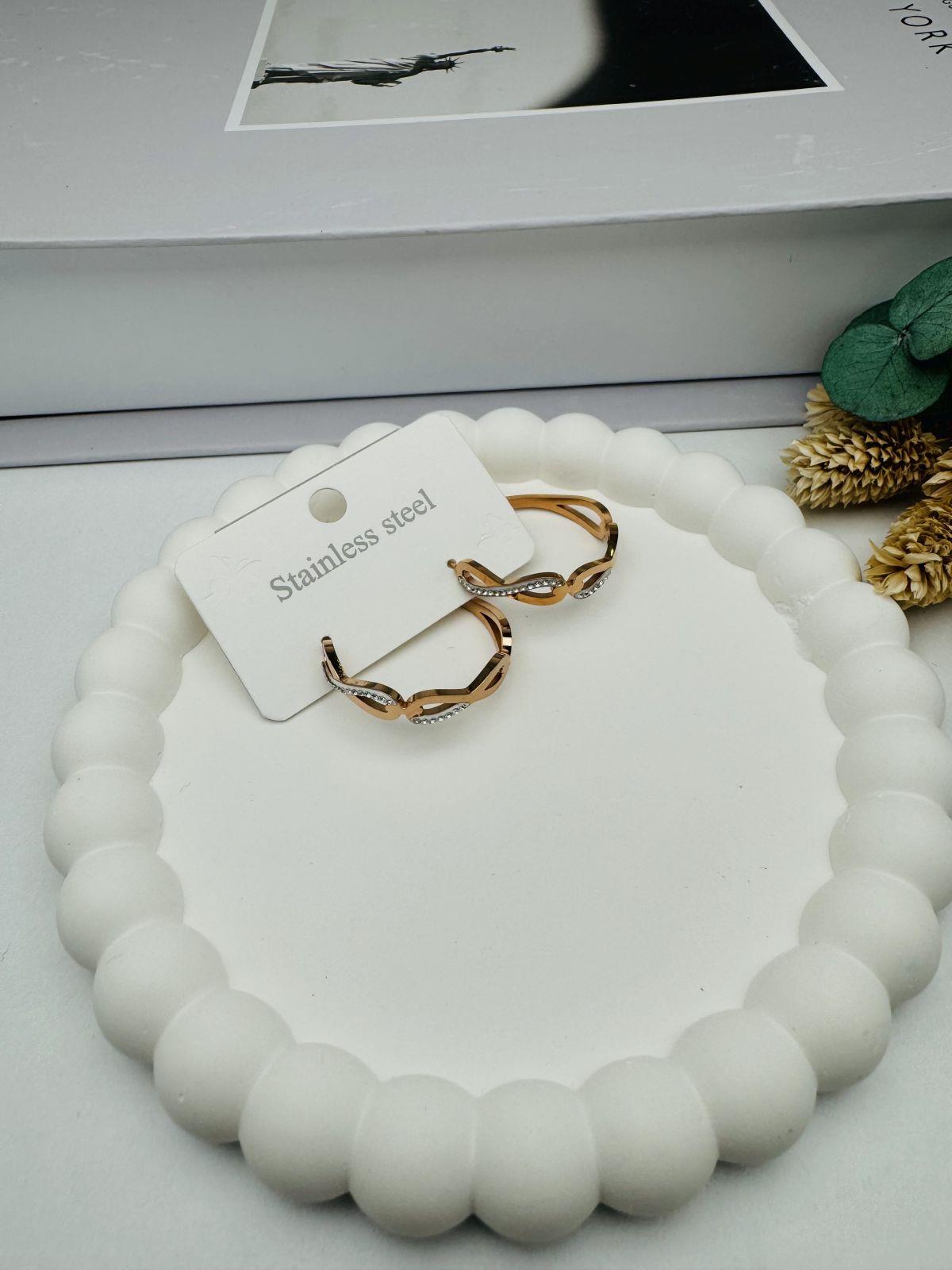 Taşlı Halka Çelik Küpe KP376-3(rose)