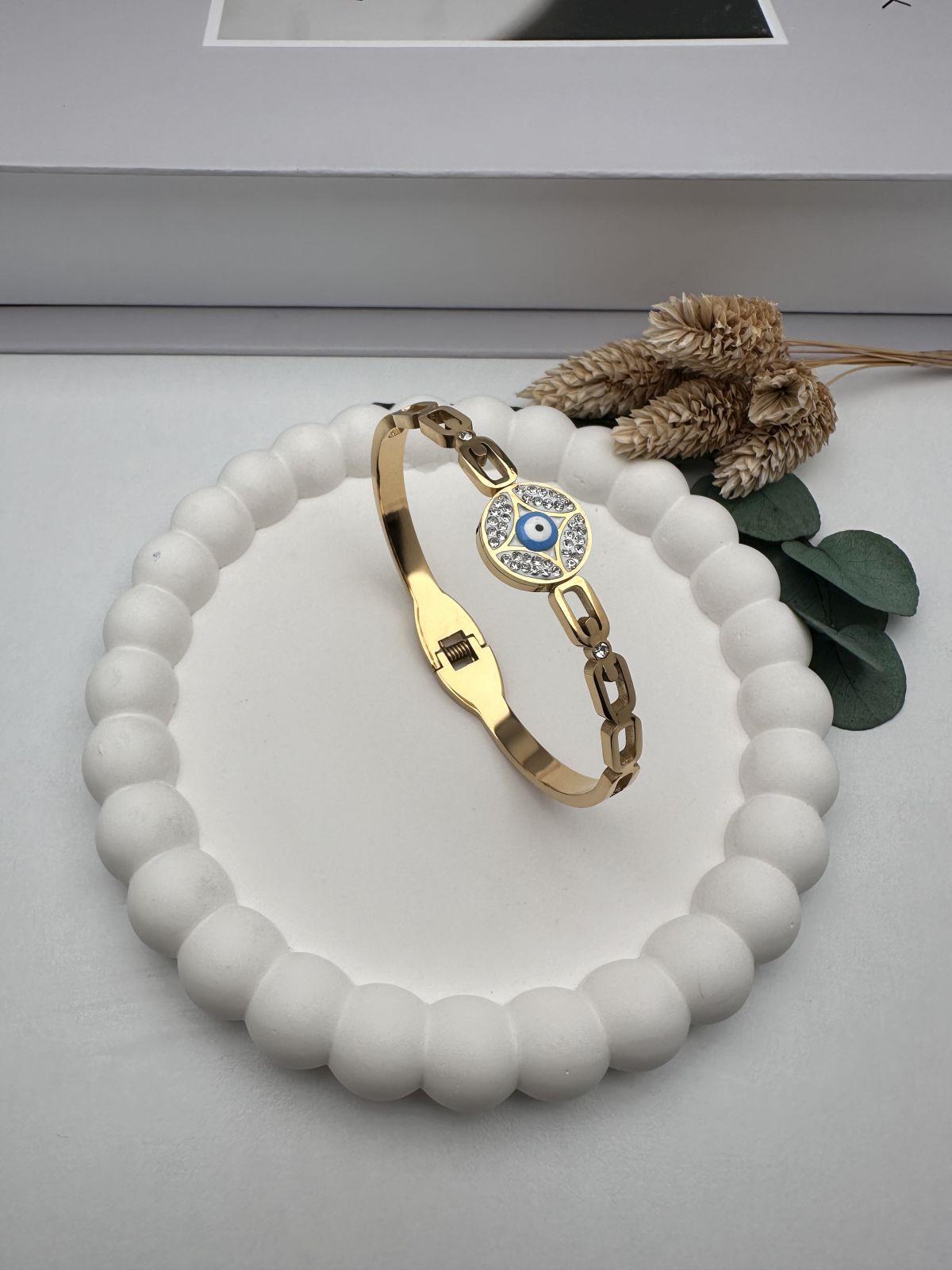 Taşlı Nazar Boncuk Detaylı (Gold) Çelik Kelepçe 2152