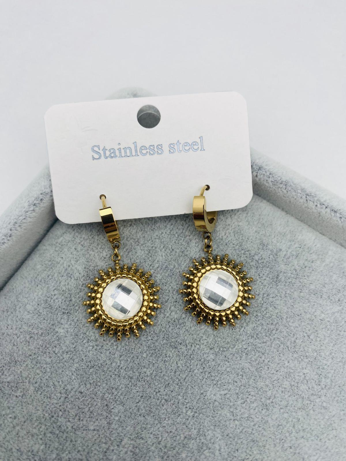 Taşlı Tasarım Çelik Küpe (gold) KP181