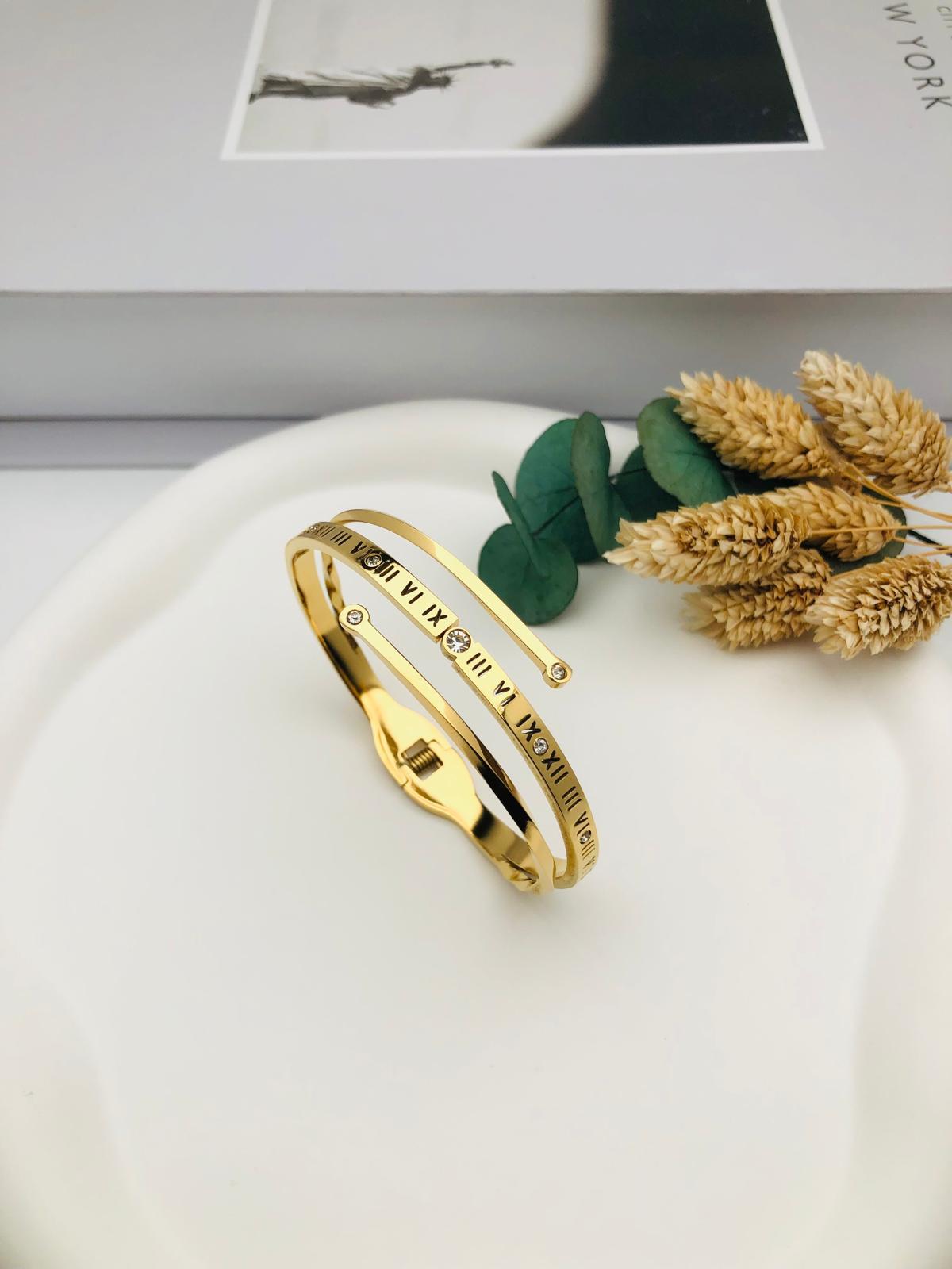 Taşlı Ve Romen RakamlıÇelik Kelepçe (Gold)2196