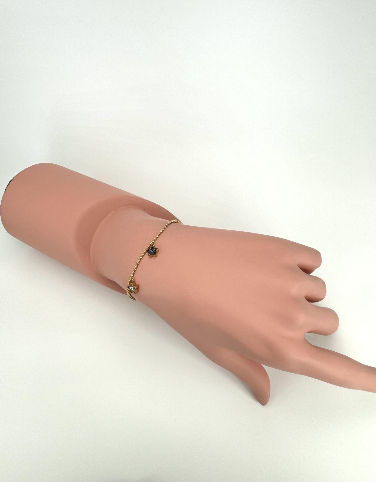 Taşlı Yıldız Zincir Detaylı Çelik Bileklik (Gold) Blk 2084