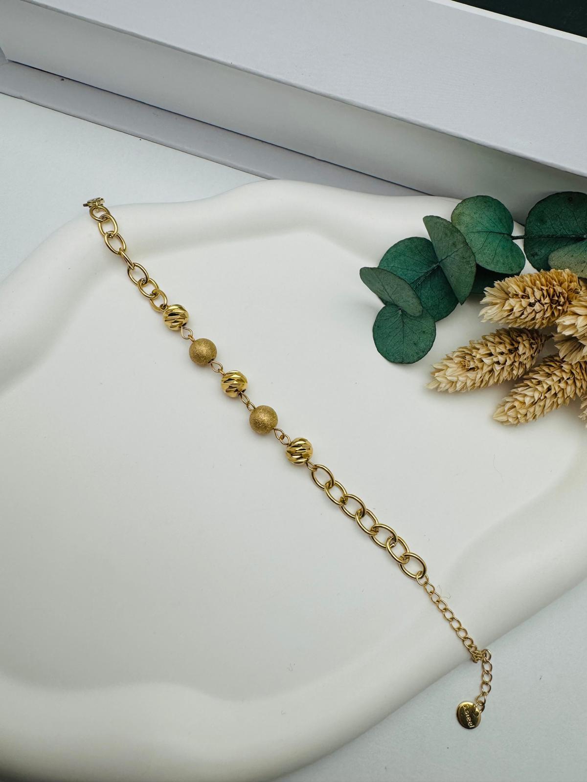 Topçuk Detaylı Çelik Bileklik (Gold) Blk 325
