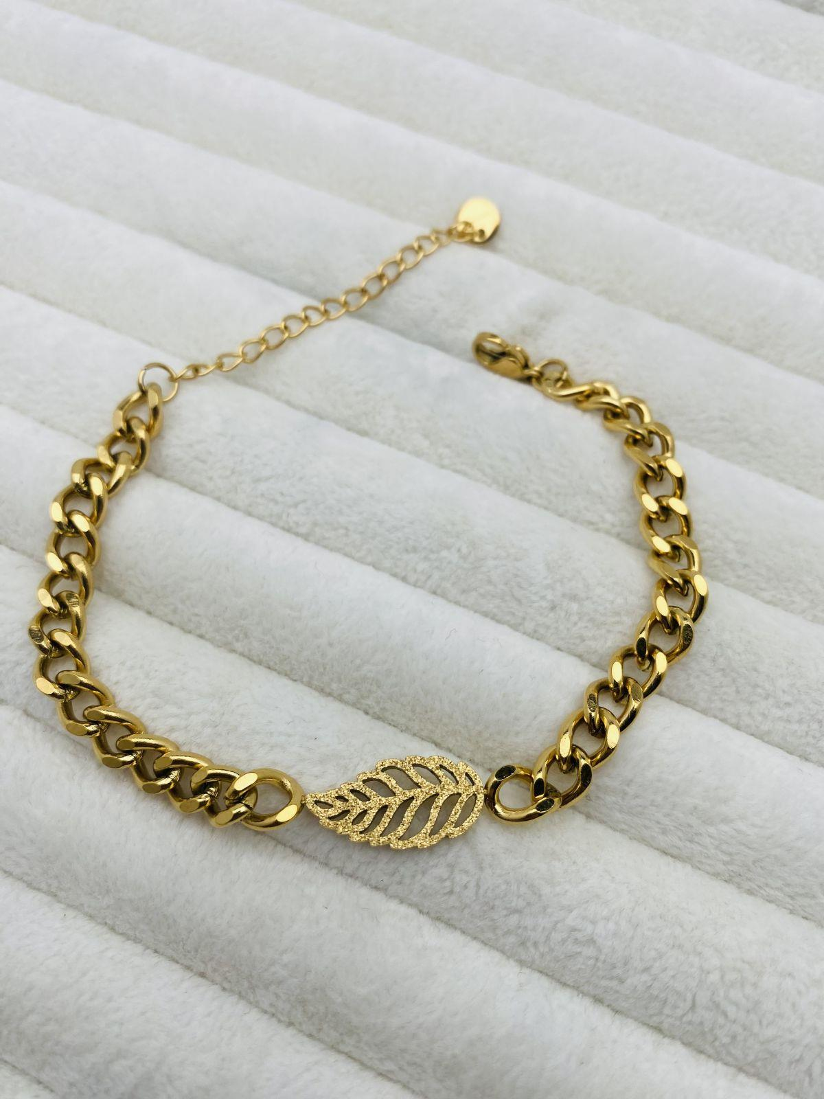 Yaprak Detaylı Çelik Bileklik (Gold) Blk 2038