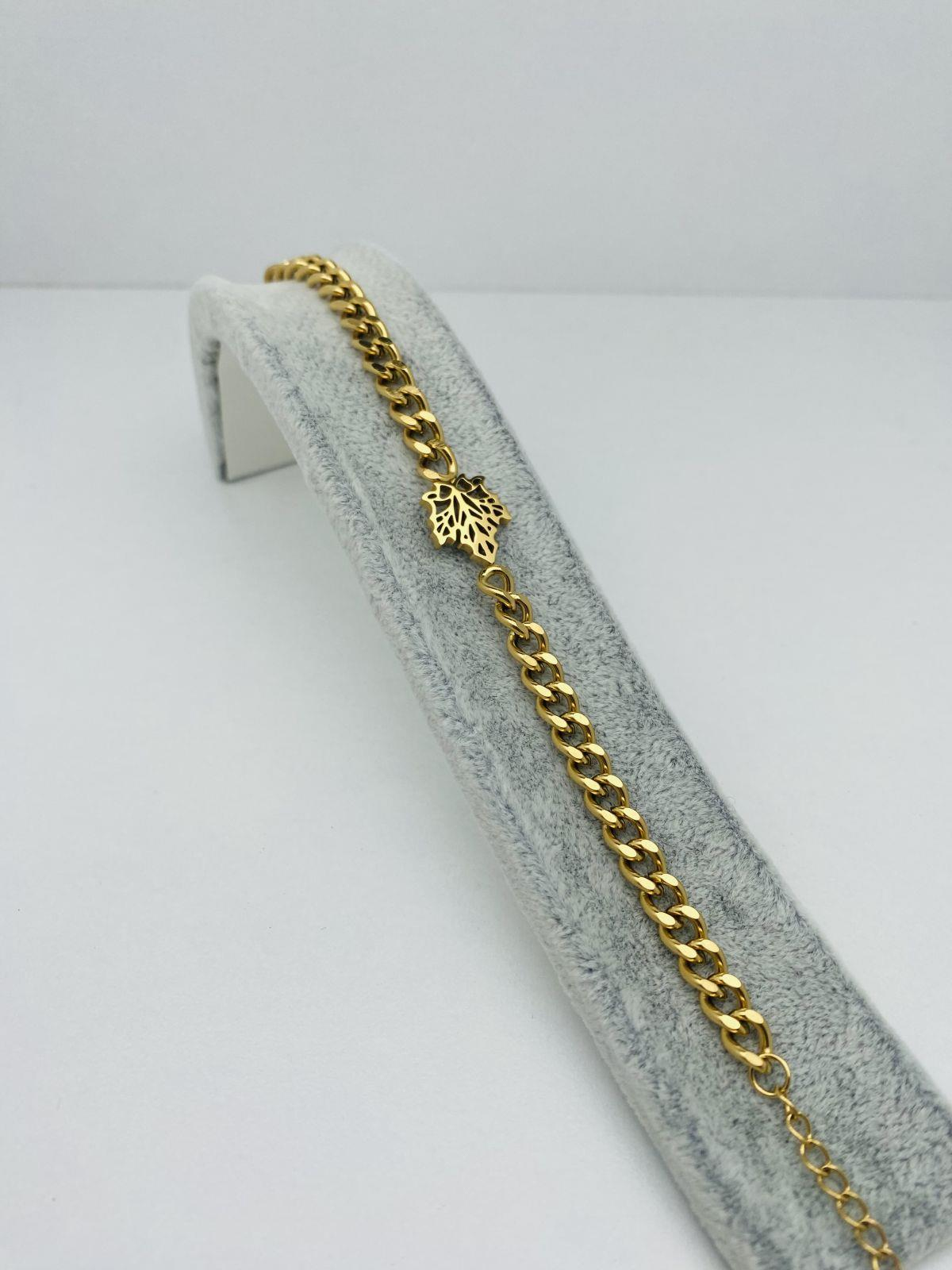 Yaprak Detaylı Çelik Bileklik (Gold) Blk 2046