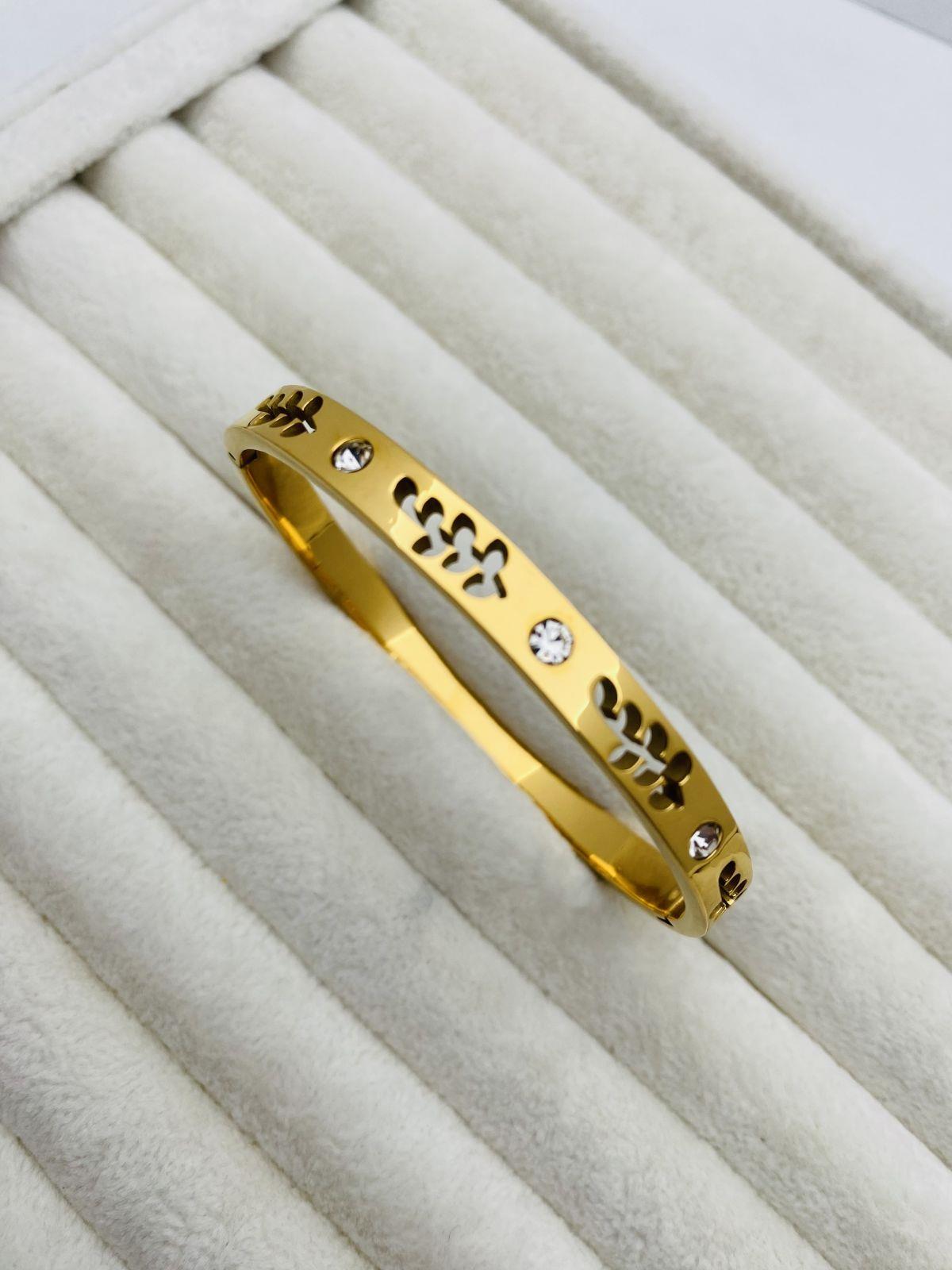 Yaprak Detaylı Taşlı Çelik  Kelepçe (Gold) 1580-1