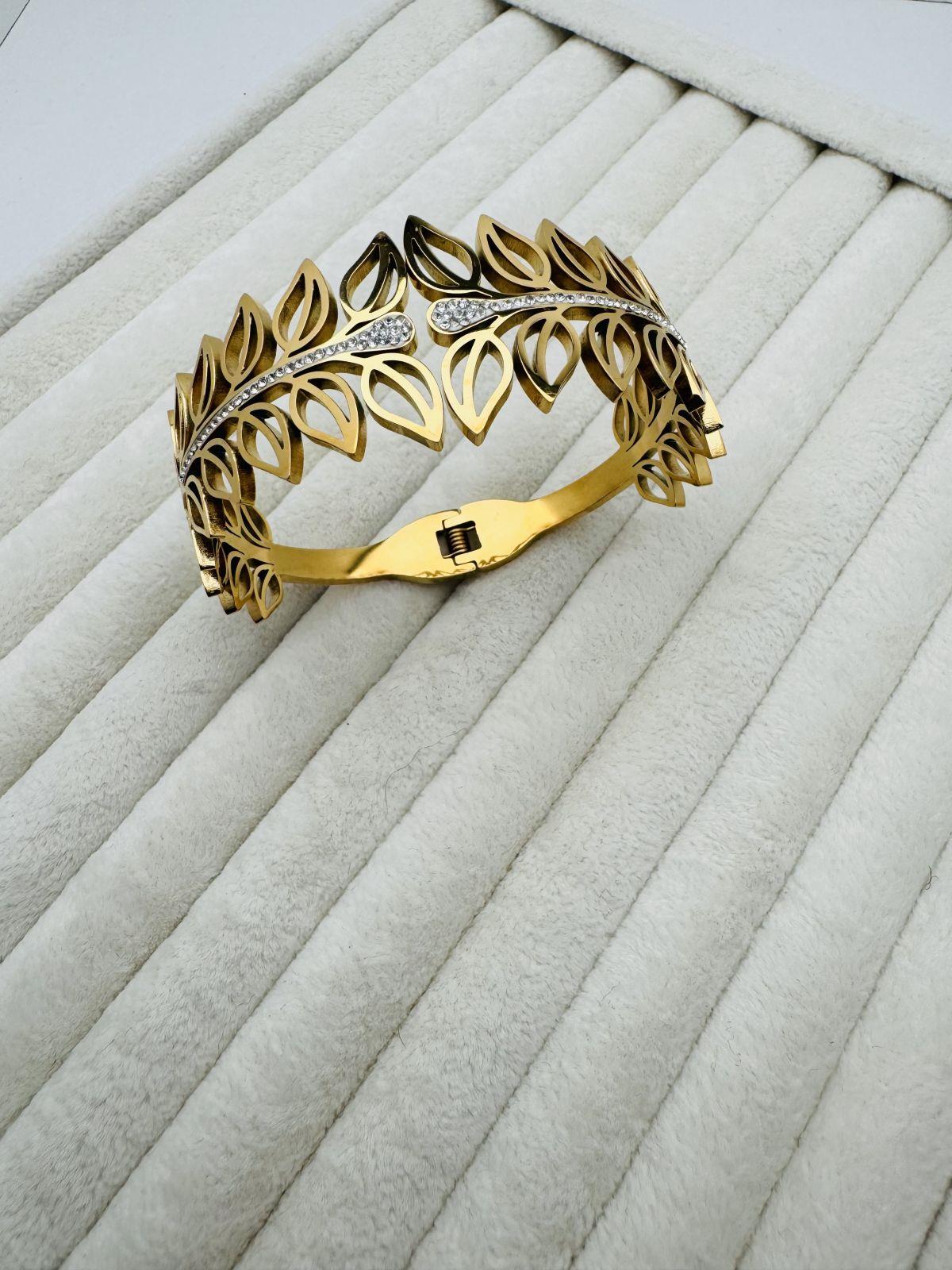 Yaprak Detaylı Taşlı Çelik Kelepçe (Gold) 1984