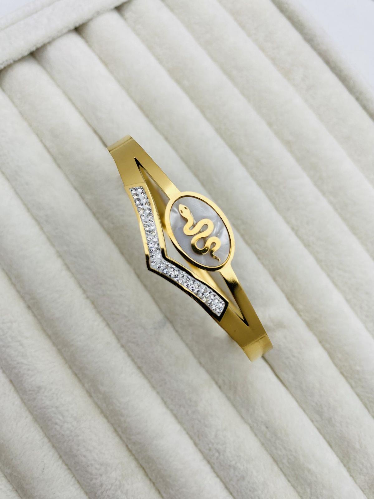 Yılan Detaylı Çelik Kelepçe (Gold)1655
