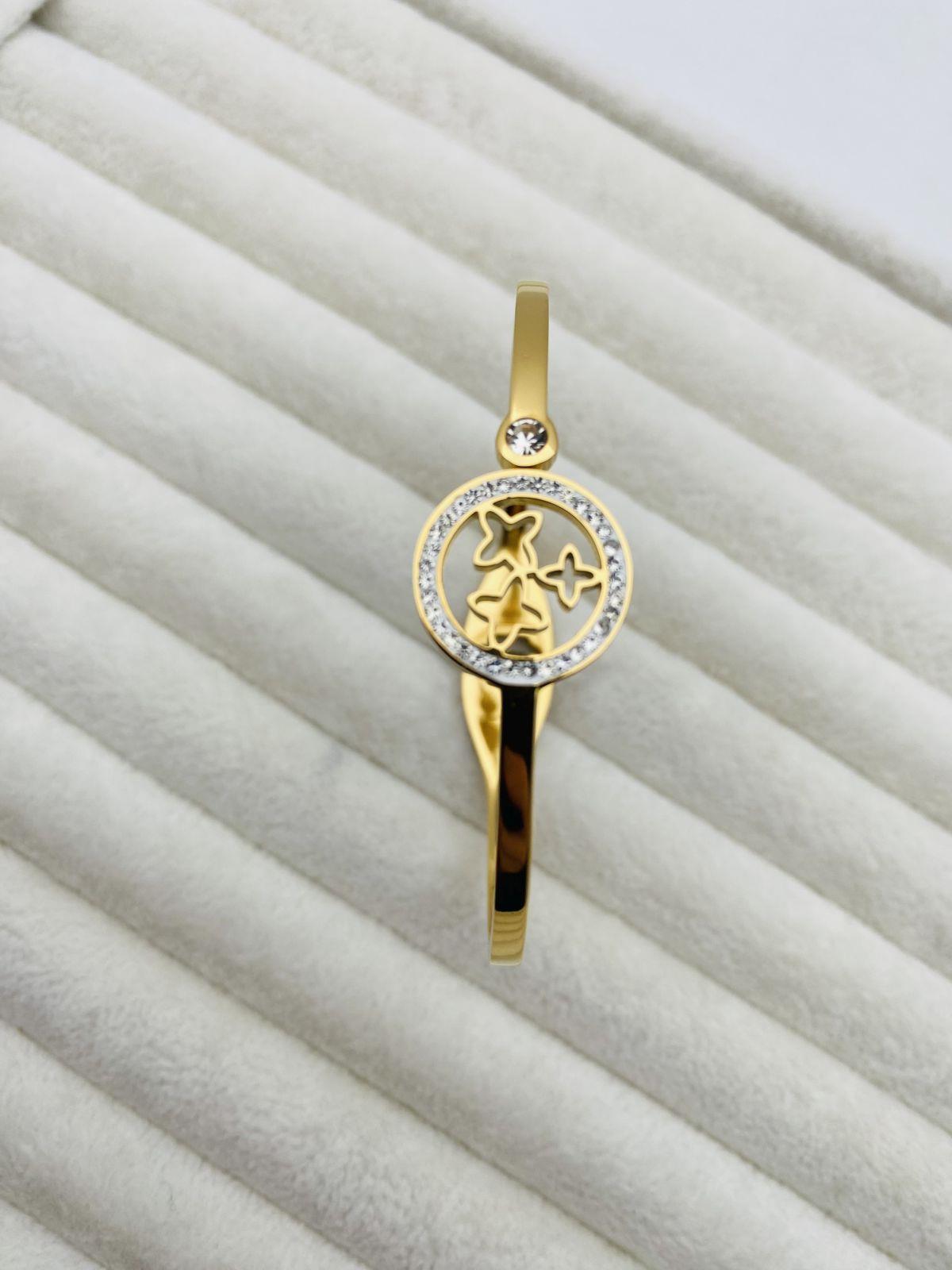 Yıldız Detaylı Taşlı Çelik  Kelepçe (Gold)1545