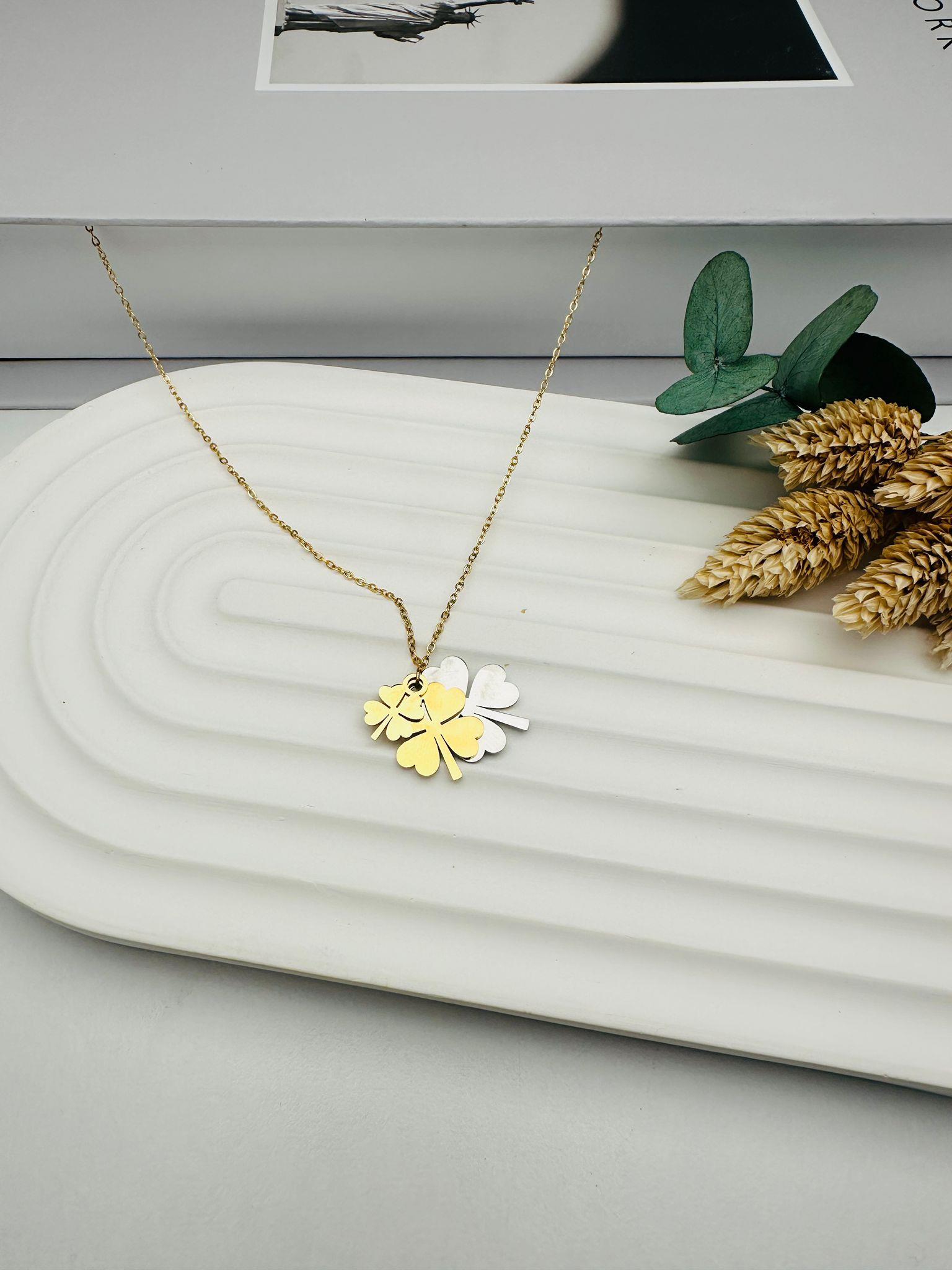 Yonca Çelik Kolye (3 Boyutlu) (Gold) 0106283