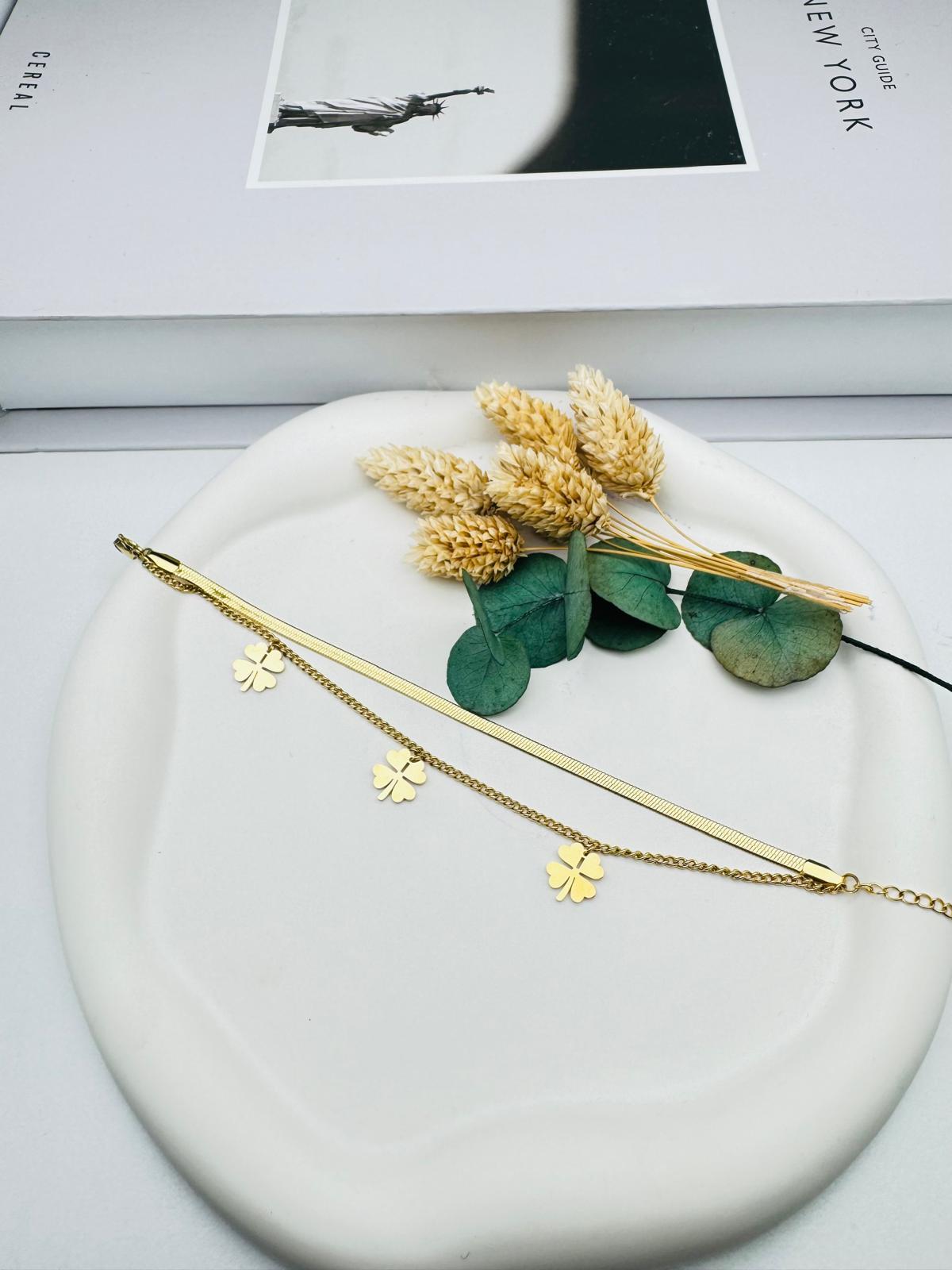 Yonca Detaylı İtalyan Çelik Bileklik (Gold) Blk 254