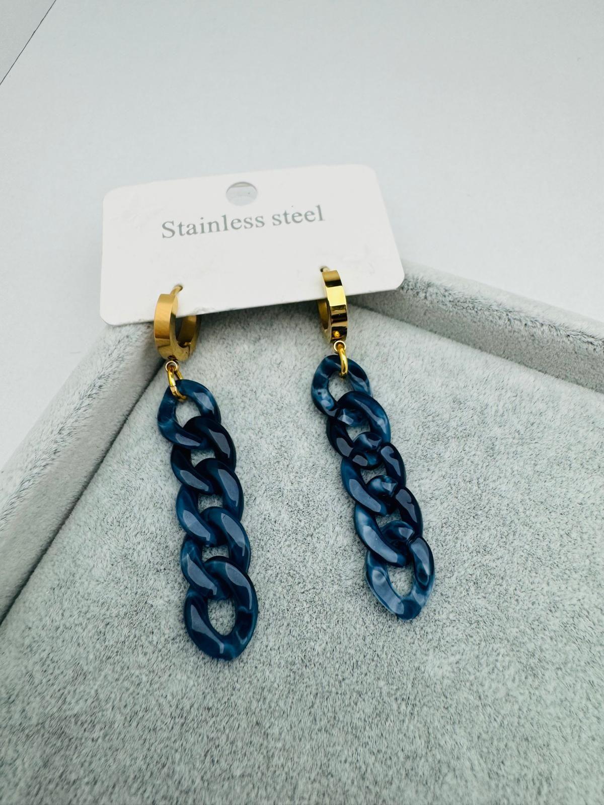 Zincir Detaylı Çelik Küpe (Gold) Kp331