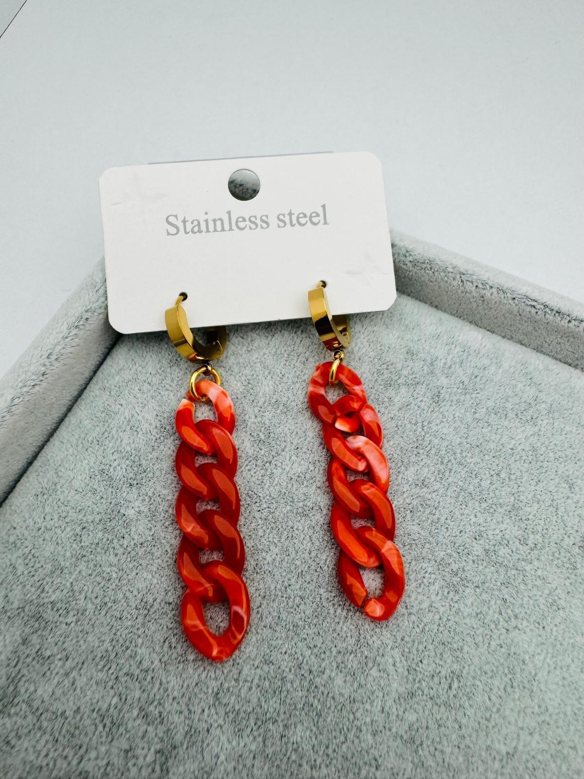 Zincir Detaylı Çelik Küpe (Gold) Kp334