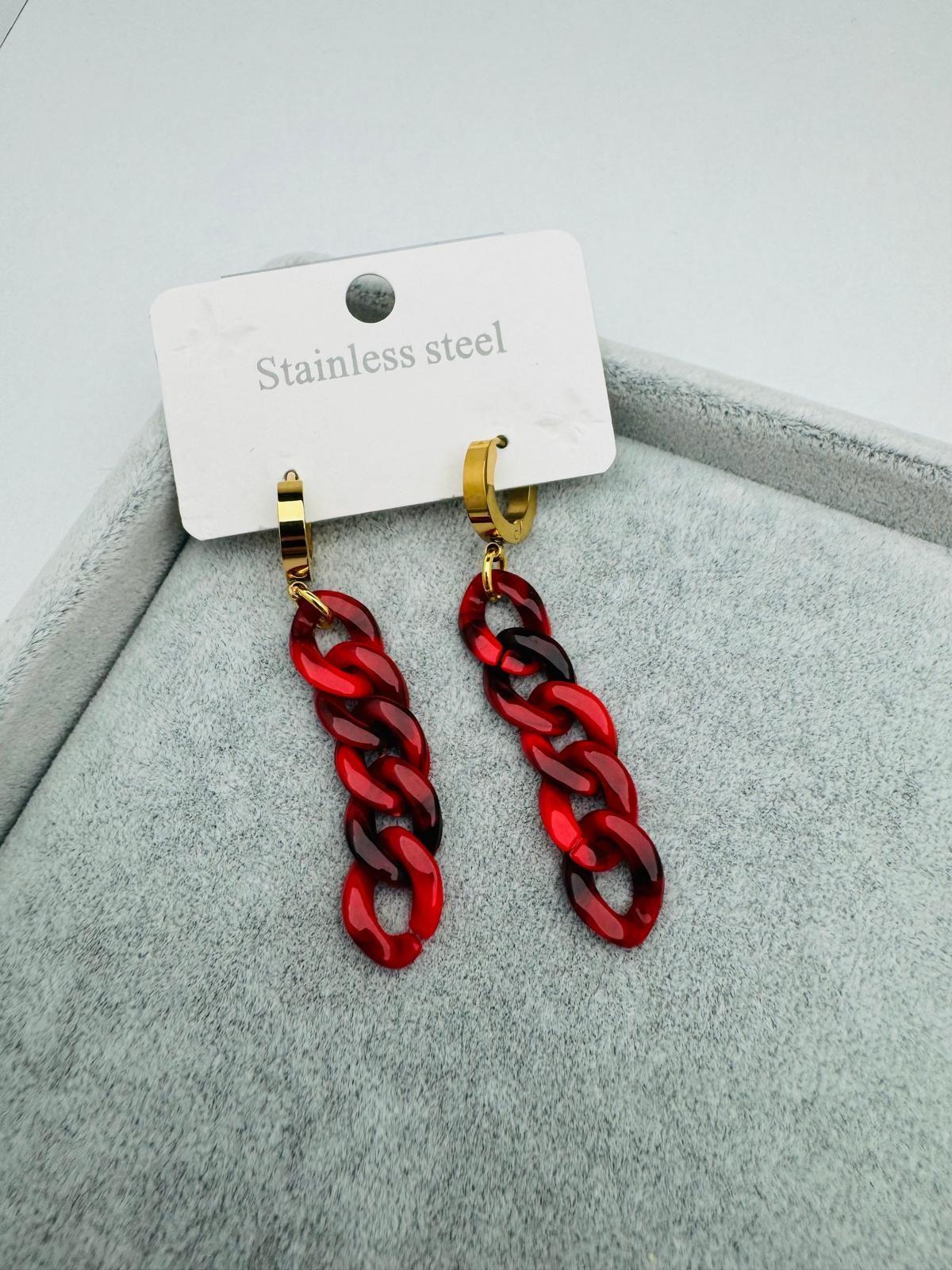 Zincir Detaylı Çelik Küpe (Gold) Kp335